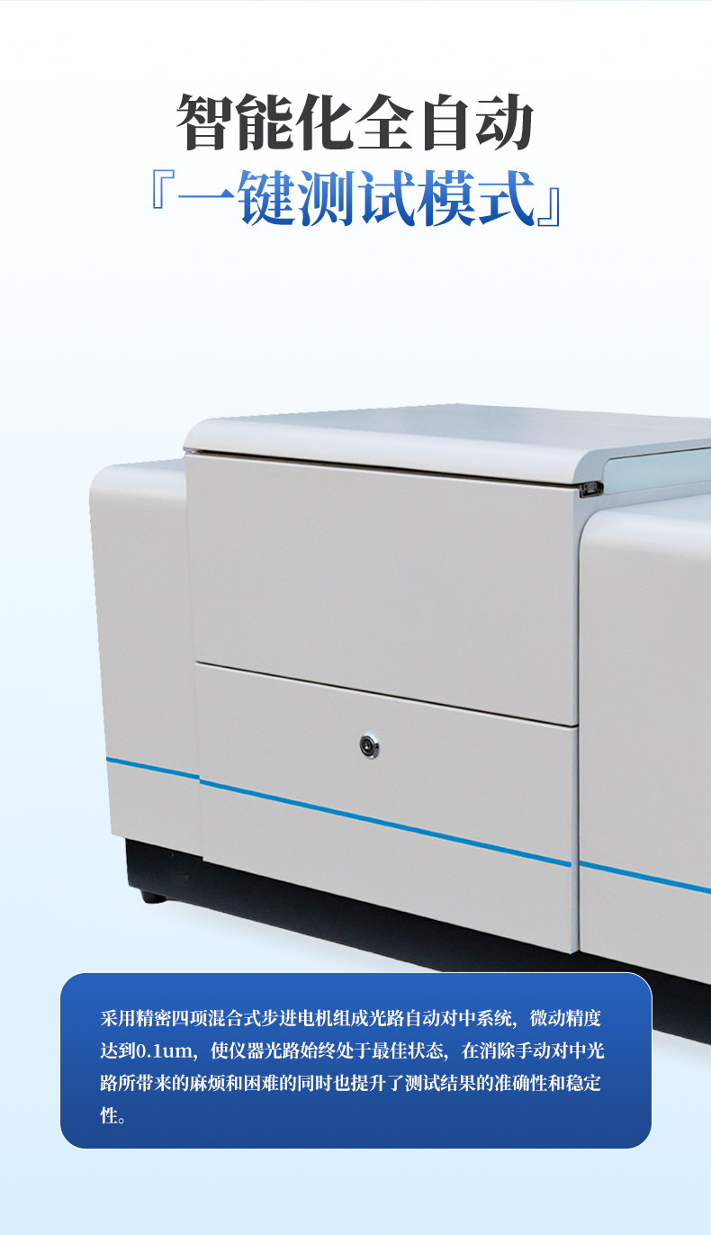| 全自動對中系統 | 采用精密四項混合式步進電機組成光路自動對中系統,微動精度達到0.1um,使儀器光路始終處于**狀態,在消除手動對中光路所帶來的麻煩和困難的同時也提升了測試結果的準確性和穩定性。 |