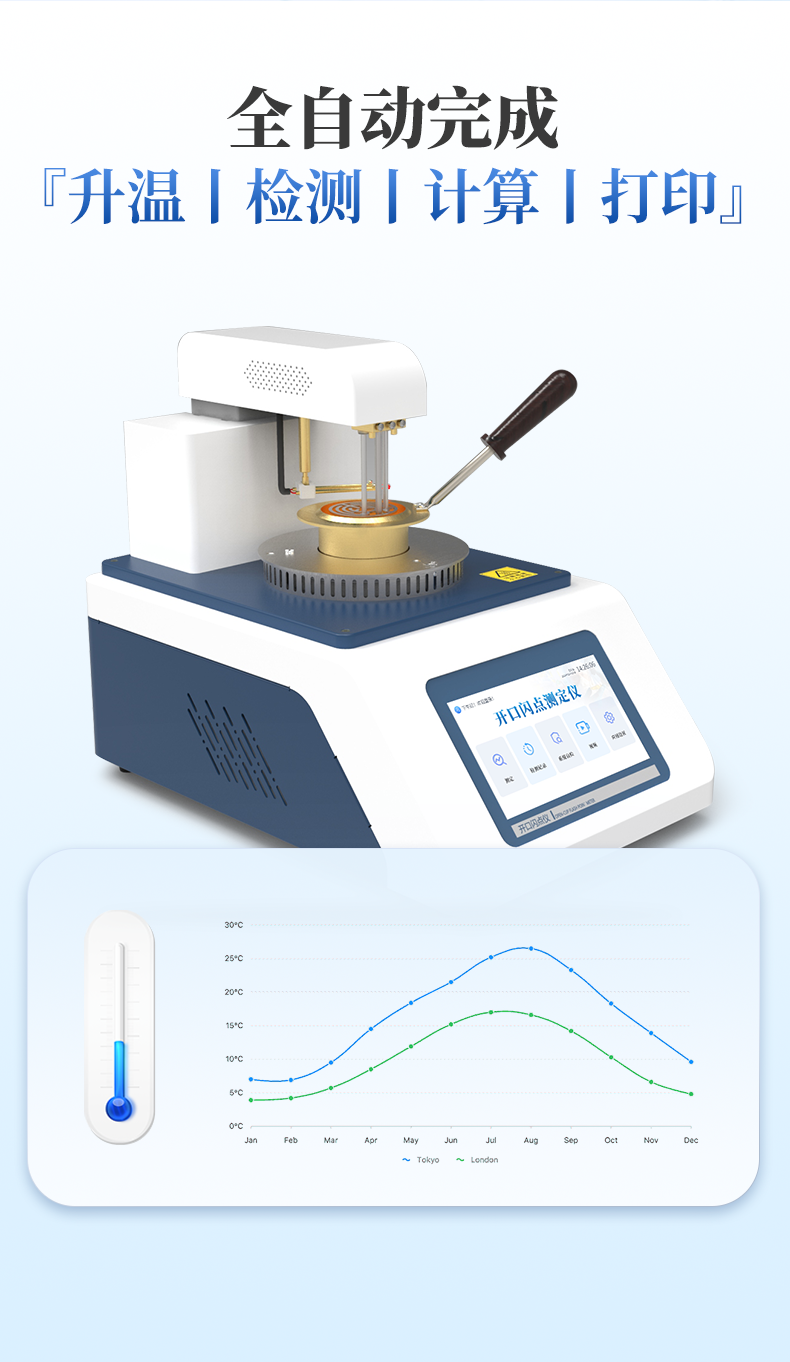 儀器按照GB/T 3536—2008方法規(guī)定的升溫曲線加熱,溫度接近預(yù)設(shè)閃點(diǎn)值時(shí)自動(dòng)點(diǎn)火,當(dāng)出現(xiàn)閃點(diǎn)和燃點(diǎn)時(shí)儀器自動(dòng)鎖定結(jié)果,并顯示和打印,同時(shí)啟動(dòng)風(fēng)機(jī)自動(dòng)對(duì)加熱器進(jìn)行冷卻。
